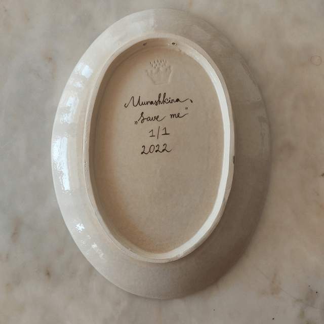 Oval 21 x 32 cm, ceramic plate, underglaze drawing, gold, third fire.